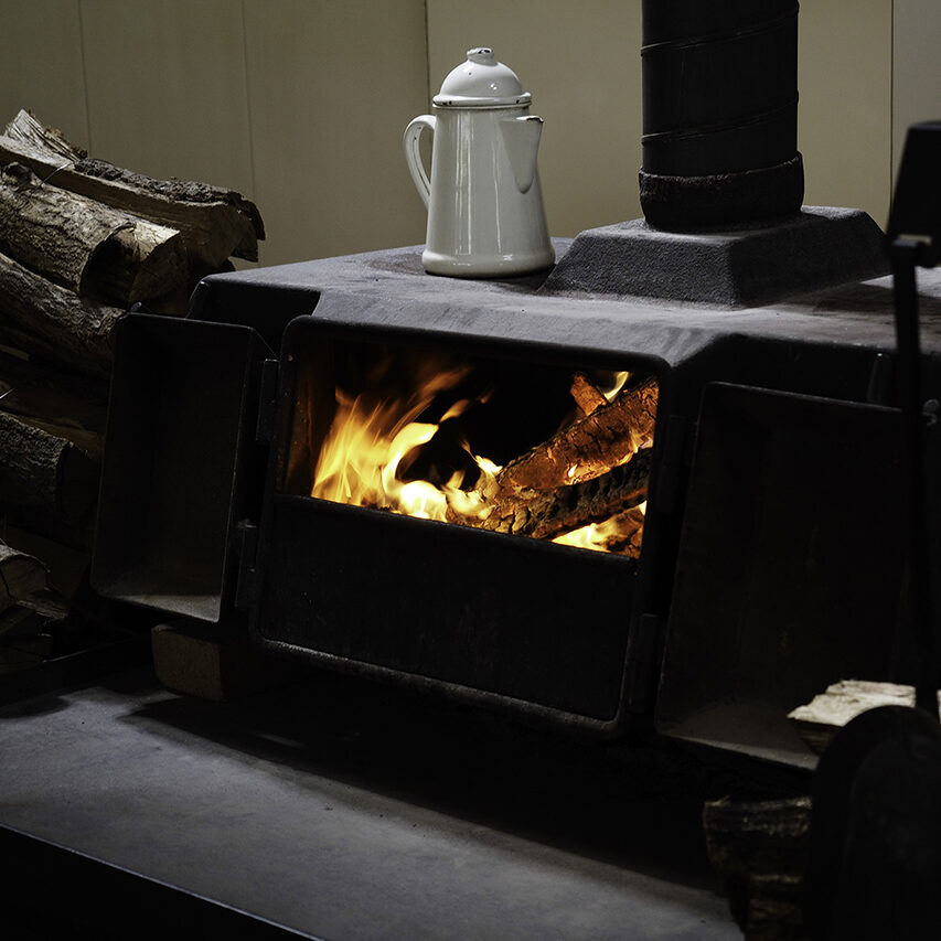 ワインショップでは、剪定後の葡萄の枝で薪ストーブをたいてお迎えします。